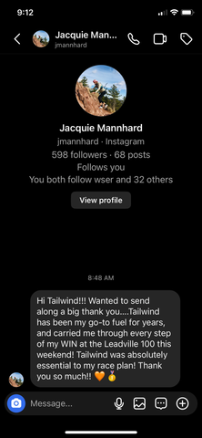 On Tuesday, we received a DM from a runner thanking us (Tailwind) for helping them fuel their race. We get these a lot from different channels. It is super cool and we love these messages. Upon further reading, we realized that the runner was the female champ at the Leadville 100 this past weekend. The DM was shared with the whole company as we do with all success stories. The owner, Jenny, was so excited she personally emailed Jacquie to congratulate her and see if we could chat about her race and just get to know her. Jacquie was kind enough to agree and set aside time to chat…