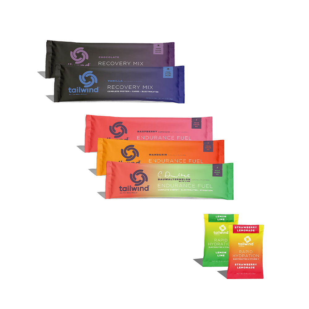 Tailwind single servings are perfect for fueling and recovering on the go. Our Best Sellers Bundle is the perfect way to try our most popular flavors of Endurance Fuel (Mandarin, Dauwaltermelon and Caffeinated Raspberry), Recovery (Chocolate and Vanilla), and Rapid Hydration (Strawberry Lemonade and Lemon Lime).